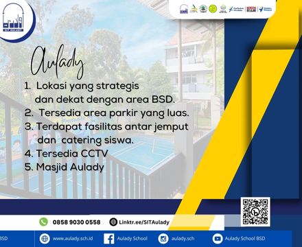 1. Lokasi yang strategis dan dekat dengan area BSD. 2. Tersedia area parkir yang luas. 3. Terdapat fasilitas antar jemput dan catering siswa. 4. Tersedia CCTV 5. Masjid Aulady
